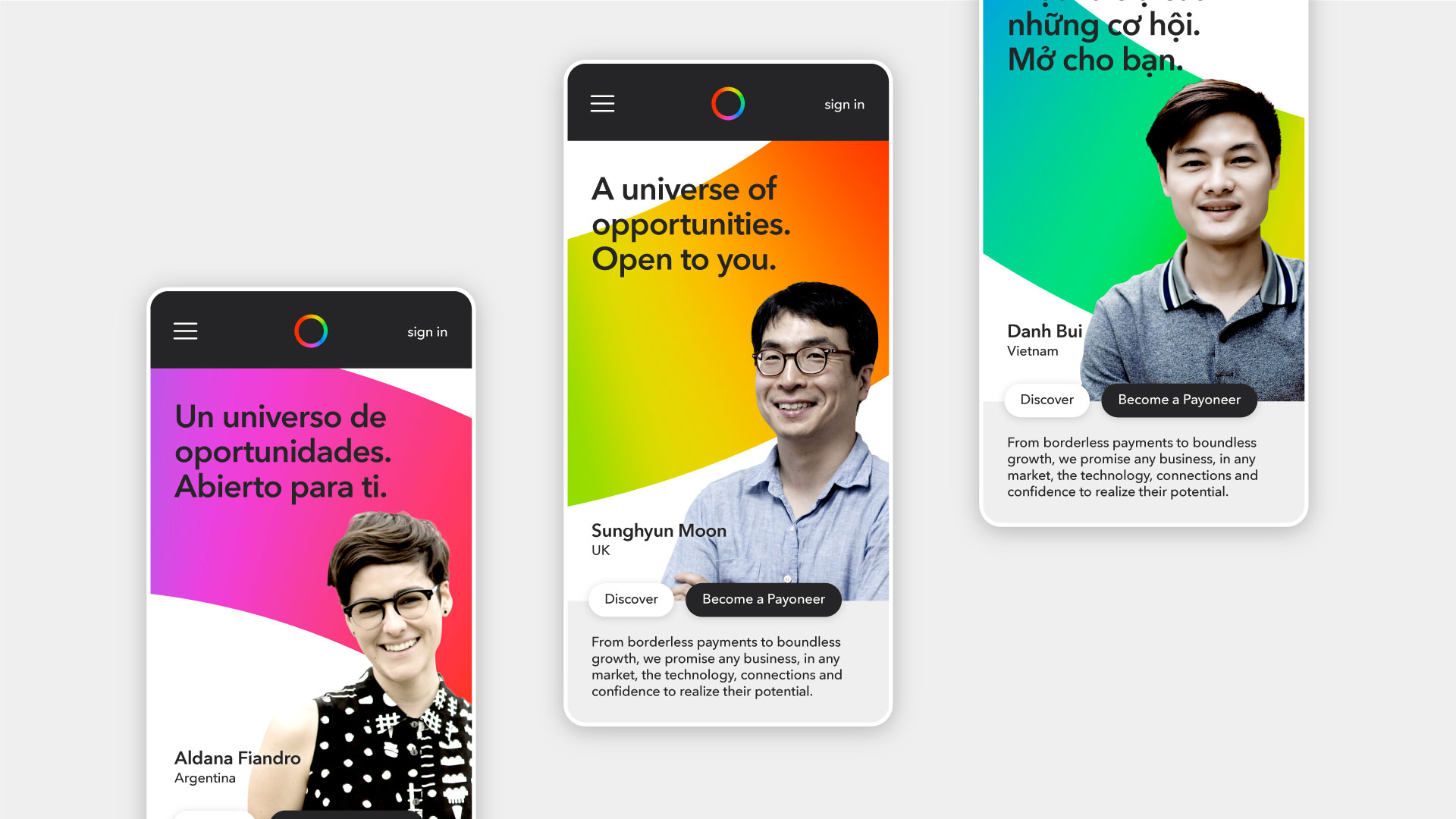 When all of these elements are combined, we have a brand that is truly Universal, wherever it might show up in the world. Use the gallery below as insipiration and best-use examples for when your are next designing for the Payoneer brand.